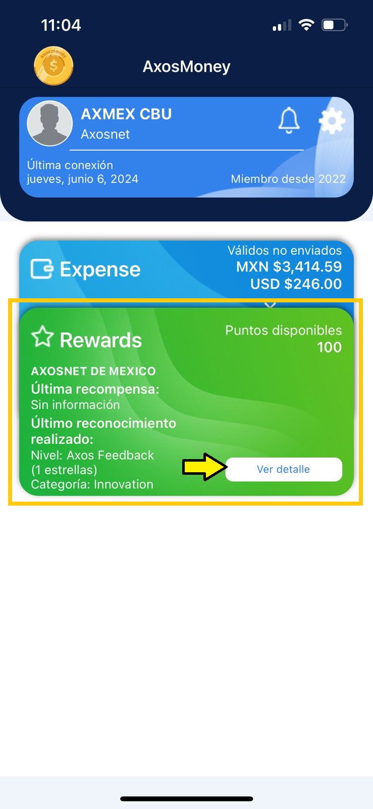 2. Ubique la tarjeta que corresponde a Rewards y haga clic sobre “Ver detalle”.