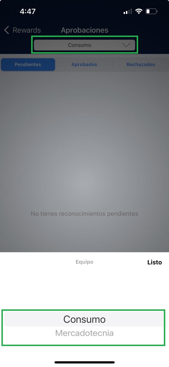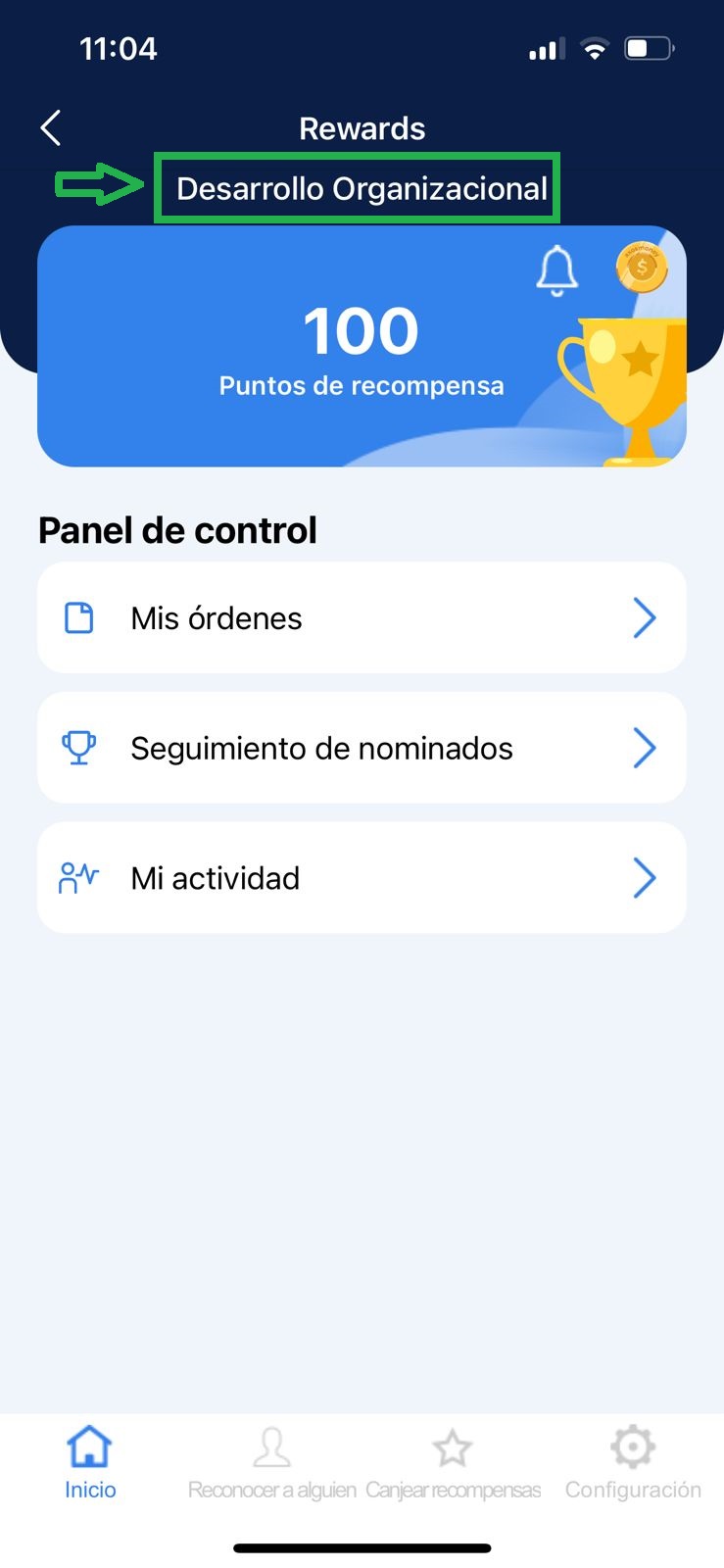 1. Rewards mostrará la página principal, así como el nombre del equipo al que pertenece ubicado en la parte superior de la pantalla.