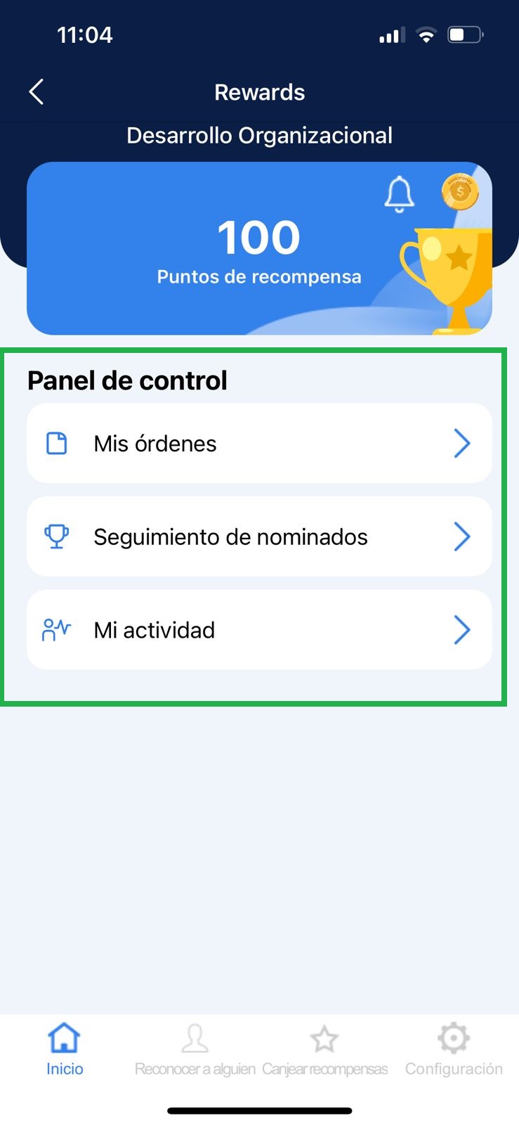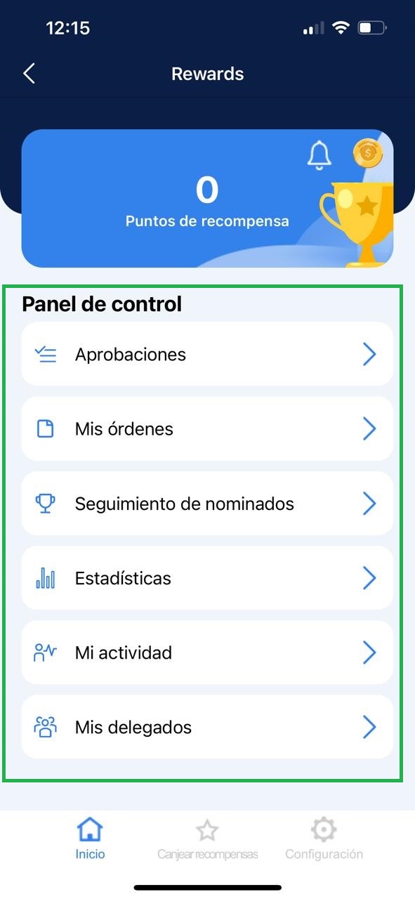 2. Dentro del Panel de Control, se encuentran las opciones exclusivas para un colaborador de Rewards.