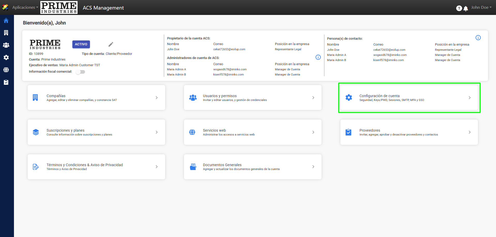 1. Seleccione la opción “Configuración de Cuenta”.
