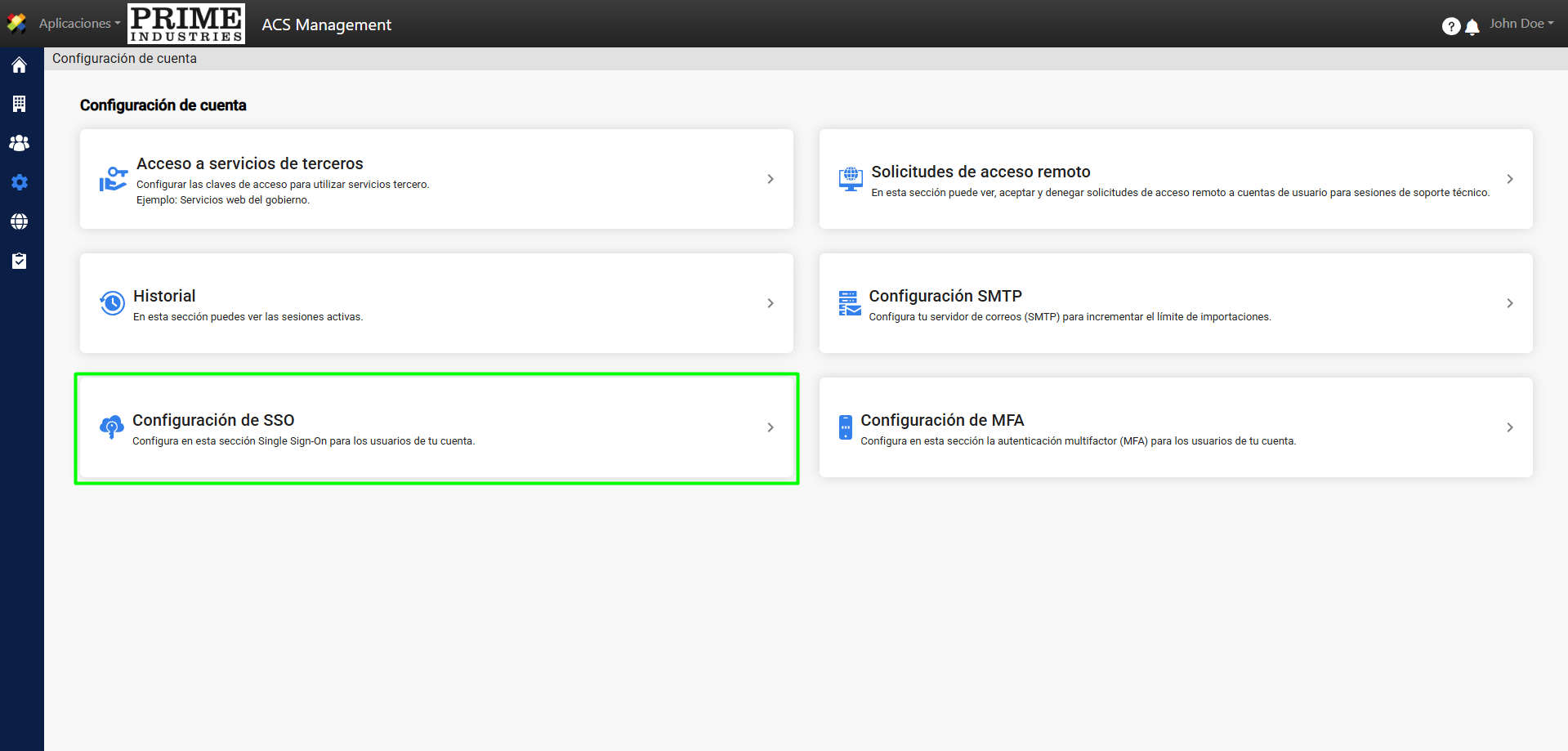 2. Haga clic en la sección “Configuración de SSO”.