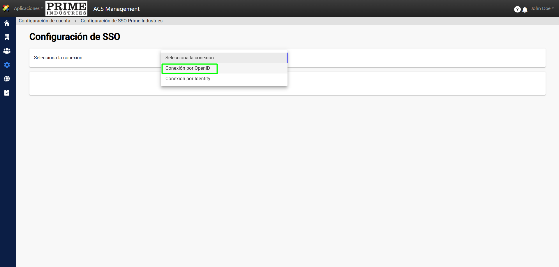 4. En el menú desplegable, elija la opción “Conexión por OpenID”.