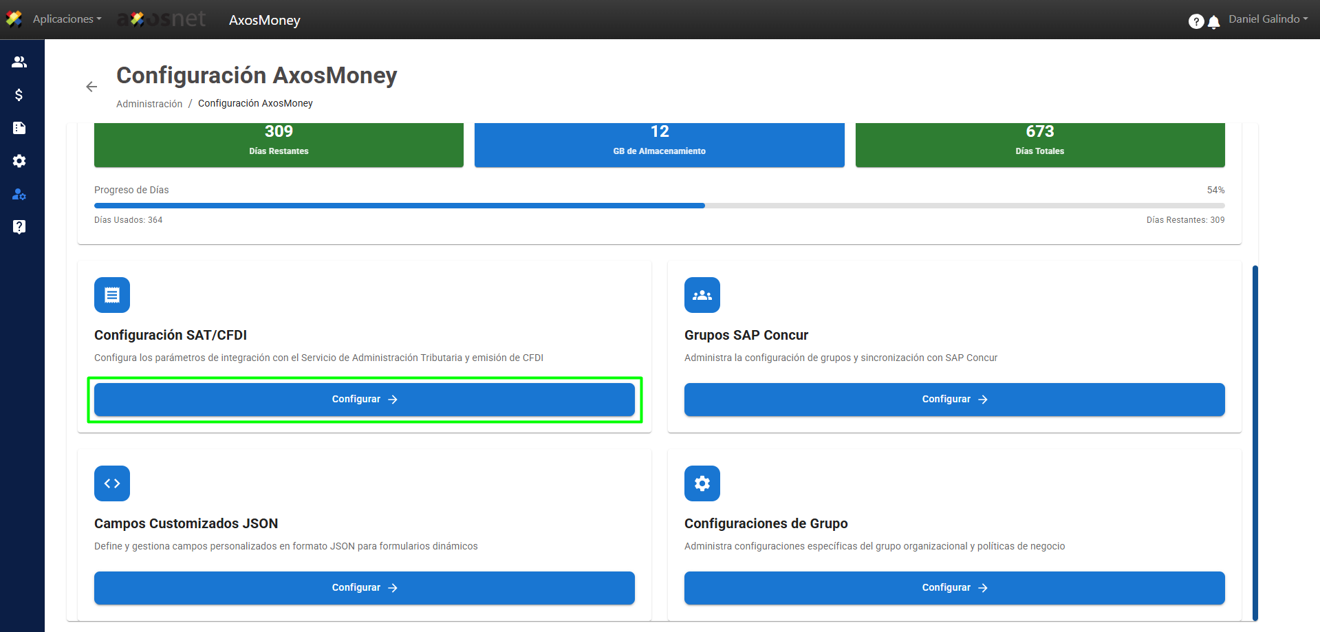 2. En la sección Configuración SAT/CFDI, haga clic en Configurar.
