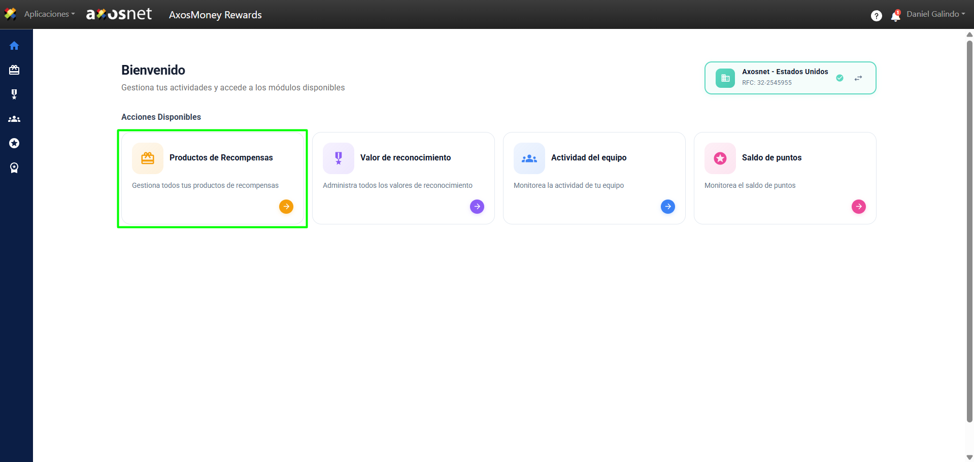 3. Haga clic en la tarjeta Productos de Recompensas.