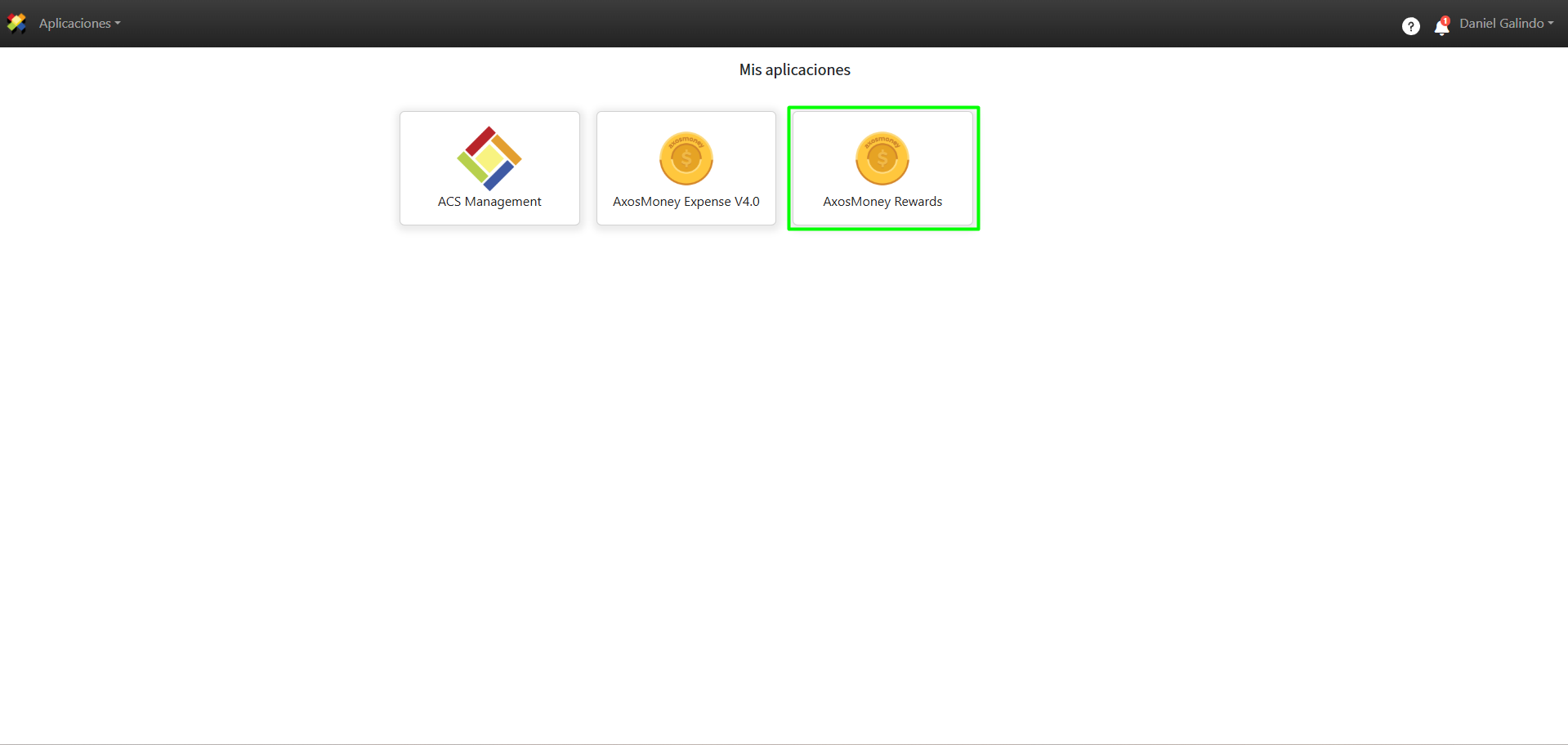 1. Ingrese a ACS Management y seleccione la aplicación AxosMoney Rewards.