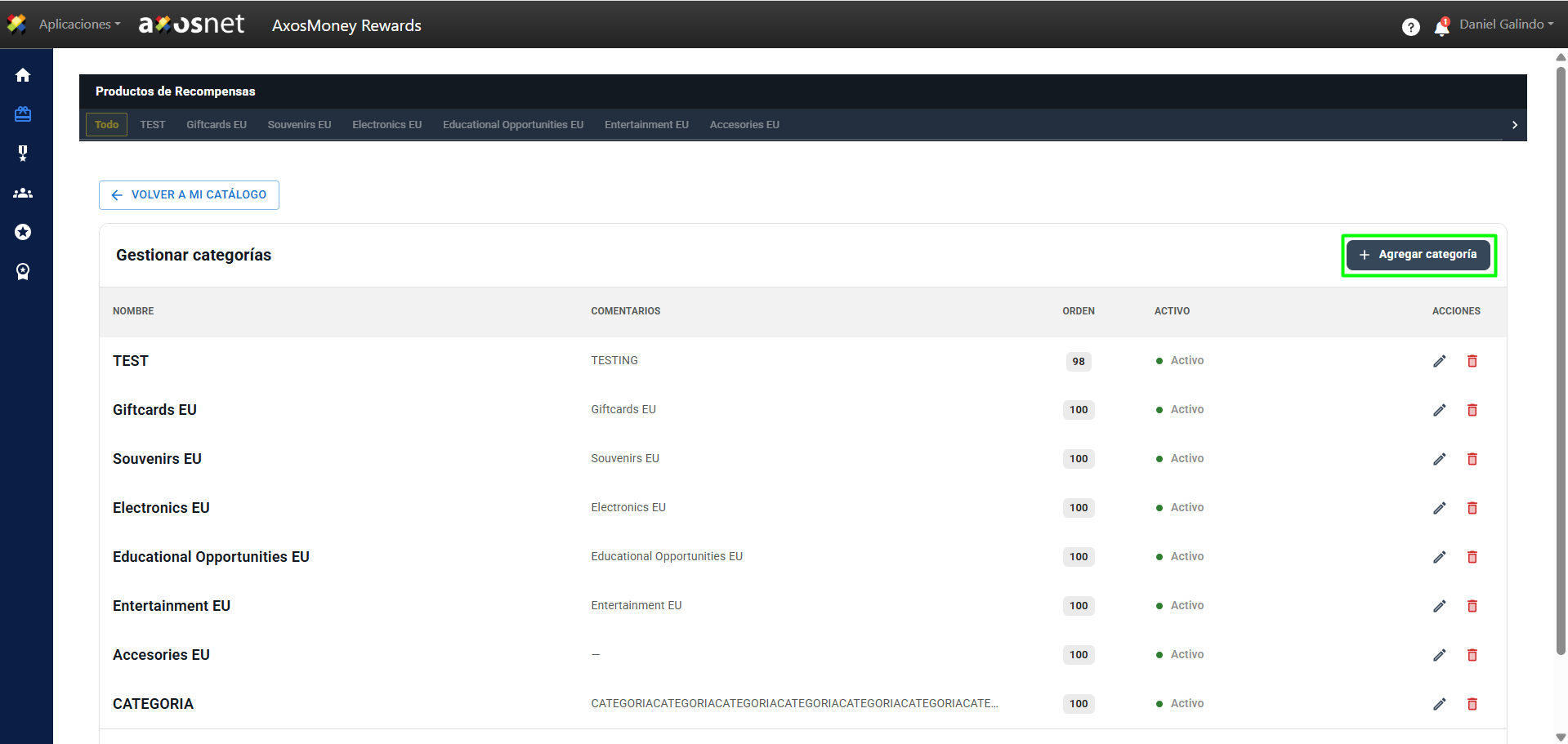 2. Para agregar una categoría haga clic en Agregar Categoría.