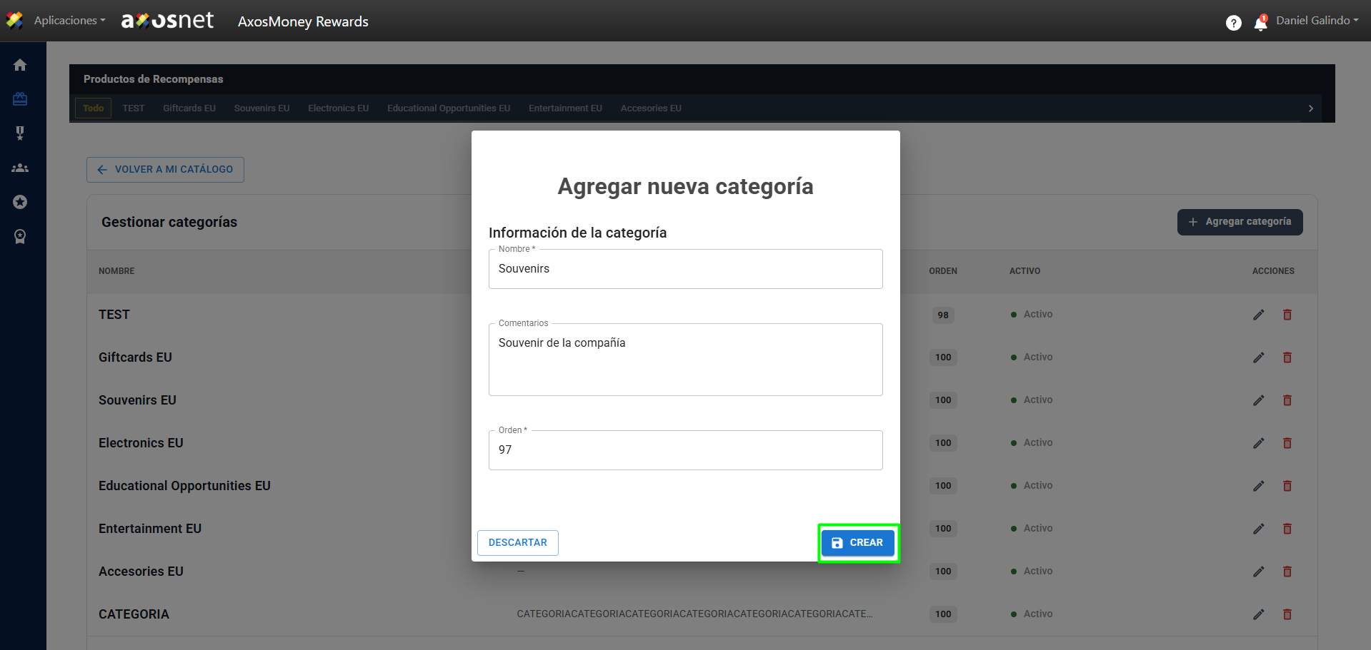 3. Aparecerá una ventana en la que podrá agregar los datos de la categoría, llene los datos y haga clic en Crear.