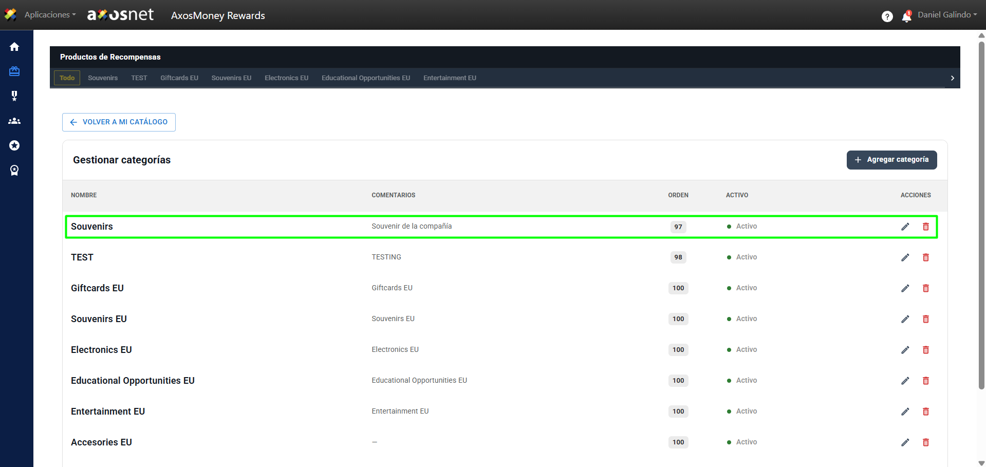 4. En esta sección podrá gestionar los productos que pueden ser canjeados como recompensas.