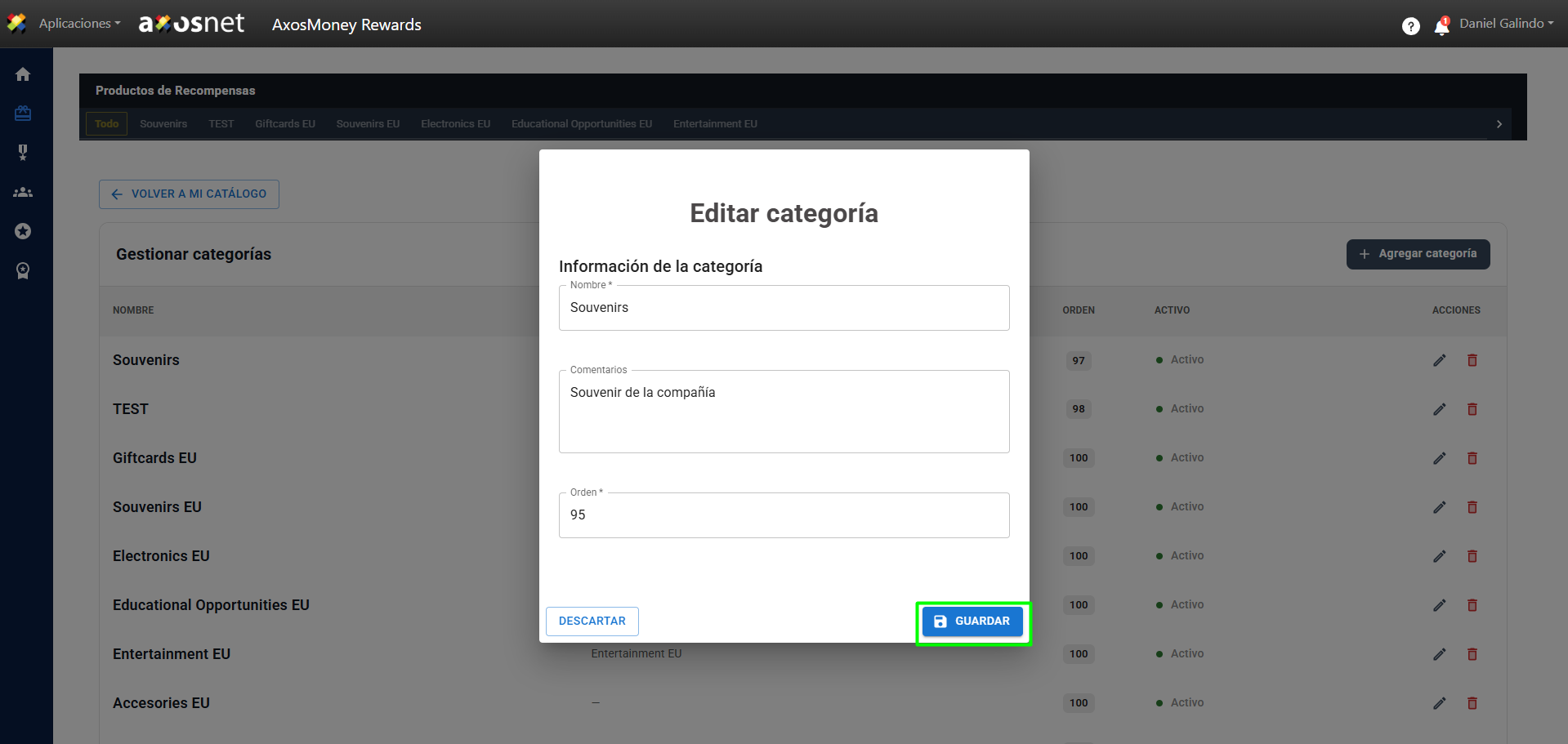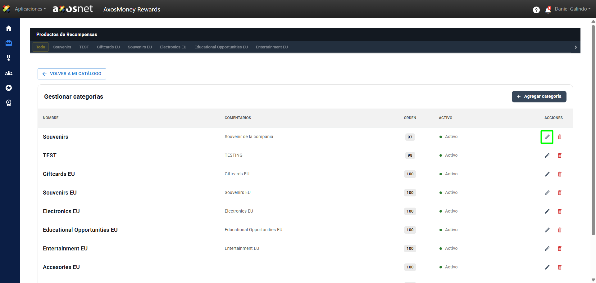 5. Puede editar una categoría haciendo clic en el icono de lápiz, aparecerá la misma ventana al momento de crear la categoría y podrá editar los datos. Al terminar haga clic en Guardar.