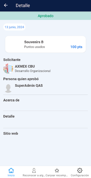 Persona que aprobó: Nombre del usuario SuperAdmin de Rewards