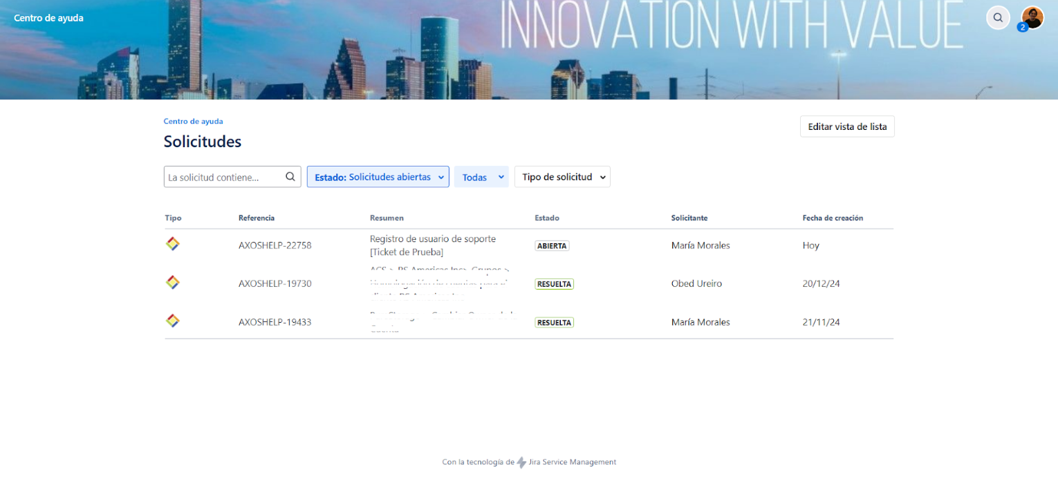 2. A continuación, se le mostrará una lista de todos los tickets y su estado.