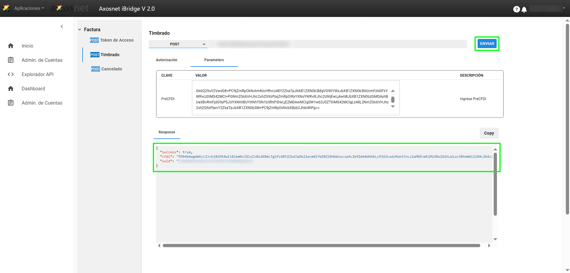 6. Ingrese a la sección de Timbrado y pegue el Token en el campo correspondiente.
