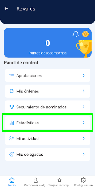 2. En el menú horizontal seleccionar la sección “Uso de recompensa”.